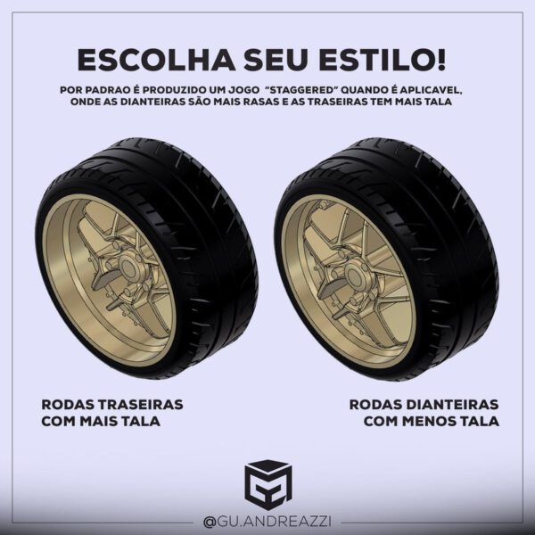 Rodas impressas em resina 3D com design autoral.