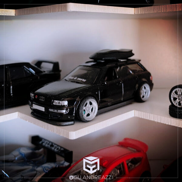 Peças impressas em resina 3D com design baseado nos bagageiros da marca Thule.
