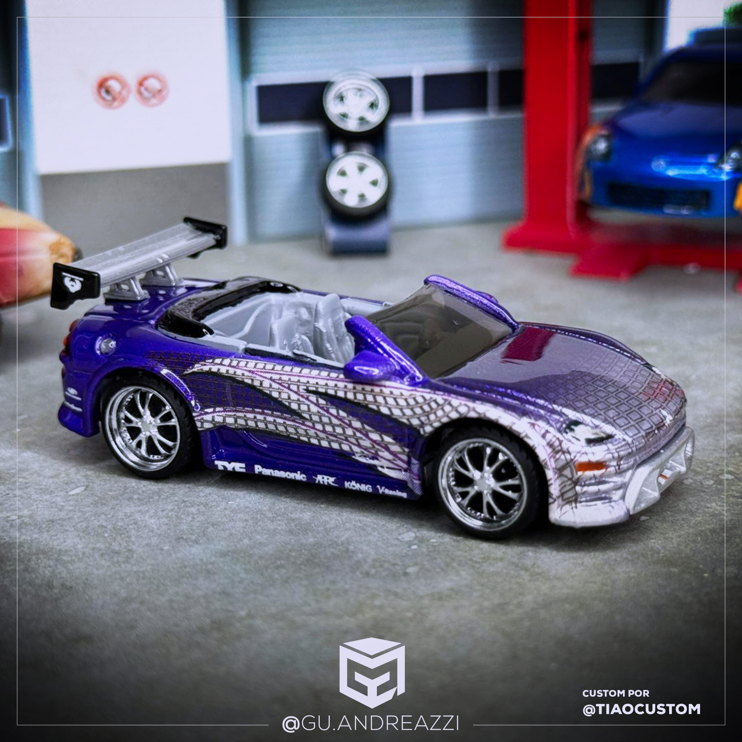 Rodas impressas em resina 3D com design baseado nas rodas Lowenhart BR5, mais conhecidas por terem sido usadas no icônico Mitsubishi Eclipse Spyder do Roman Pearce em +Velozes +Furiosos (2Fast, 2Furious em inglês).