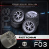 Rodas impressas em resina 3D com design baseado nas rodas Lowenhart BR5, mais conhecidas por terem sido usadas no icônico Mitsubishi Eclipse Spyder do Roman Pearce em +Velozes +Furiosos (2Fast, 2Furious em inglês).
