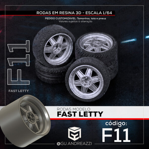 Rodas impressas em resina 3D com design baseado nas rodas do carro Jensen Interceptor utilizado no filme Velozes Furiosos 6, guiado por Letty Ortiz.