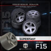 Rodas impressas em resina 3D com design baseado nas rodas Rotiform, mais conhecidas por terem sido usadas no Toyota Corolla guiado por Lucas White no filme paródia Super Velozes, Mega Furiosos (Superfast em inglês).