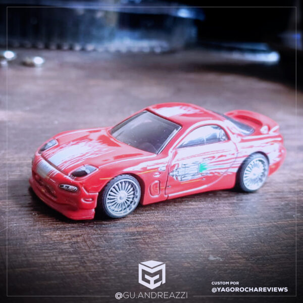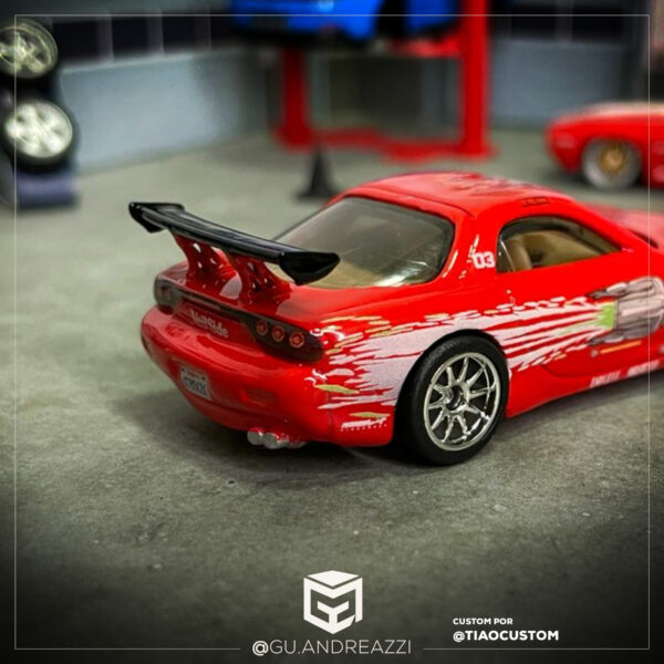 Rodas impressas em resina 3D com design baseado nas rodas Andrew Racing, mais conhecidas por terem sido usadas no icônico Mazda RX7 Veilside do Dominic Toretto em Velozes e Furiosos (The Fast and the Furious em inglês).