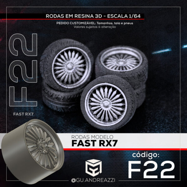 F22 – Fast RX7 – Rodas 3D para 1/64