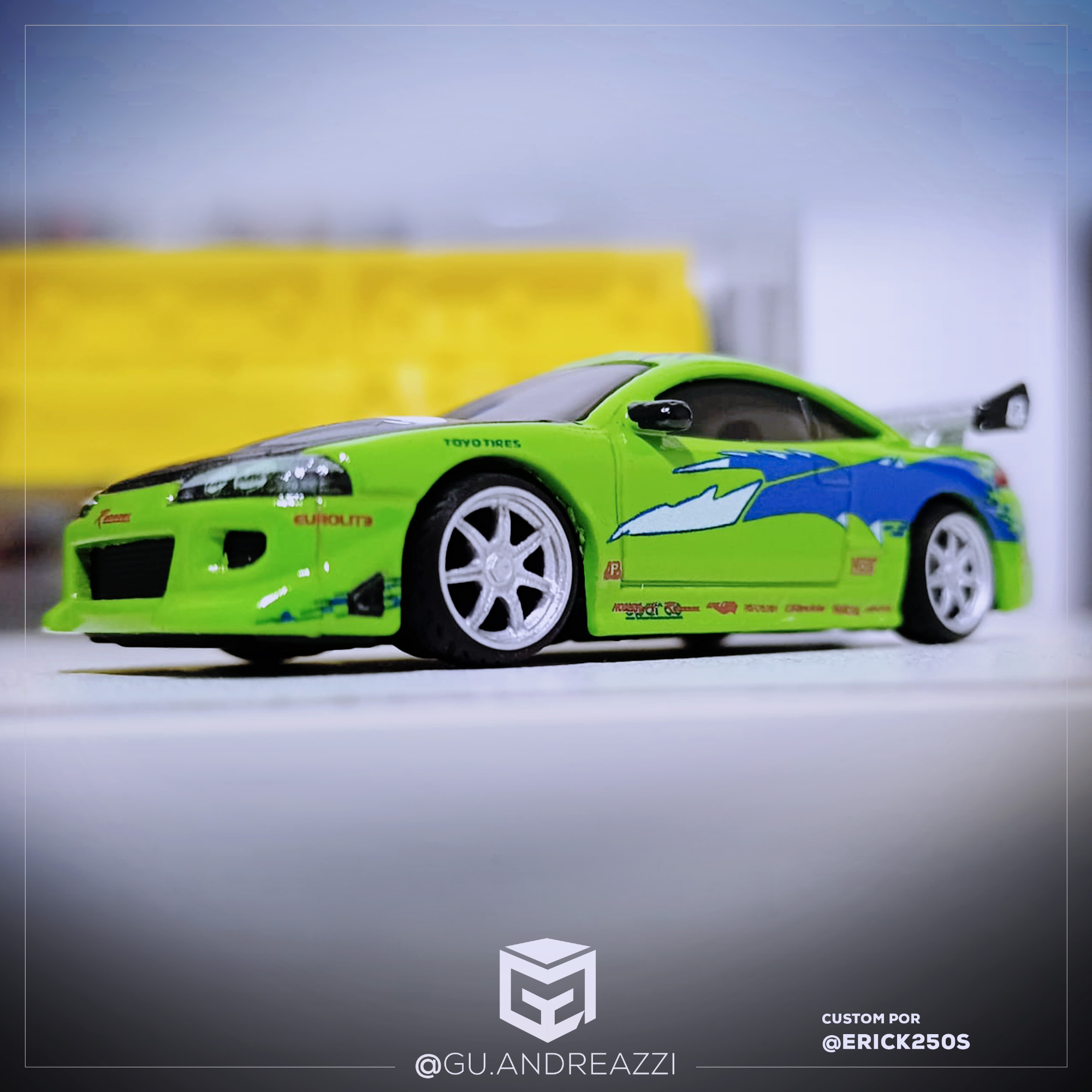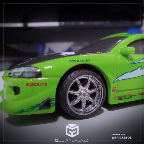 Rodas impressas em resina 3D com design baseado nas rodas Axis Se7en, mais conhecidas por terem sido usadas no icônico Mitsubishi Eclipse guiado por Brian O'Connor em Velozes e Furiosos (the Fast and the Furious em inglês).