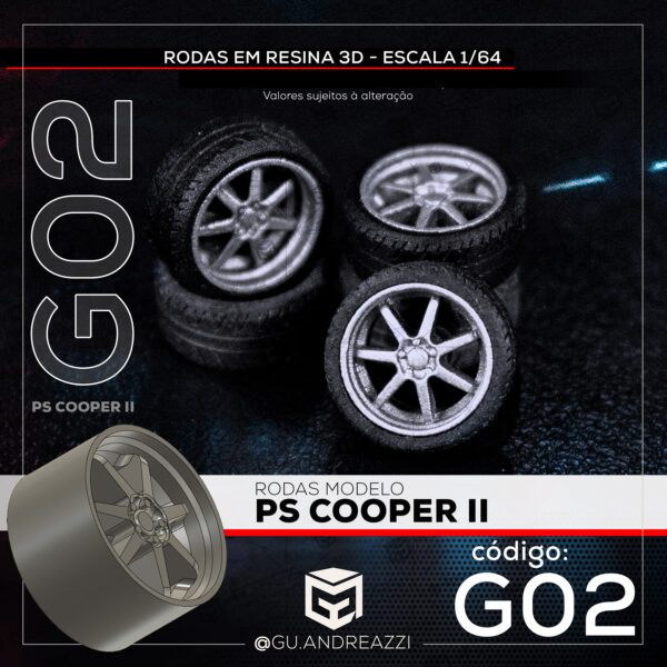G02 – PS Cooper 2 – Rodas 3D para 1/64