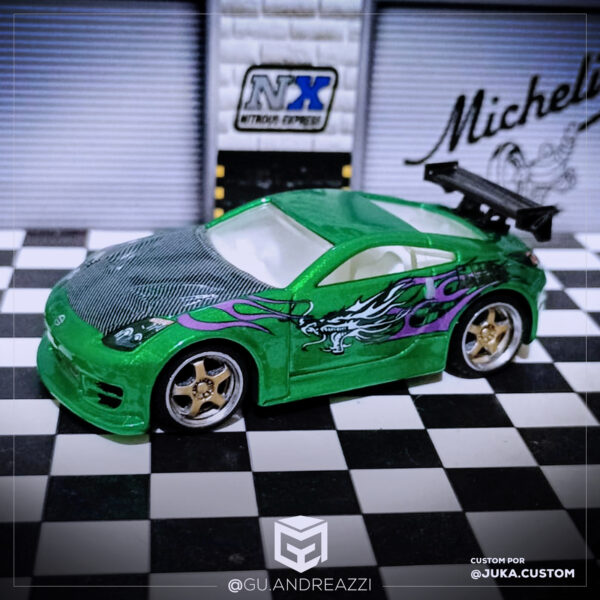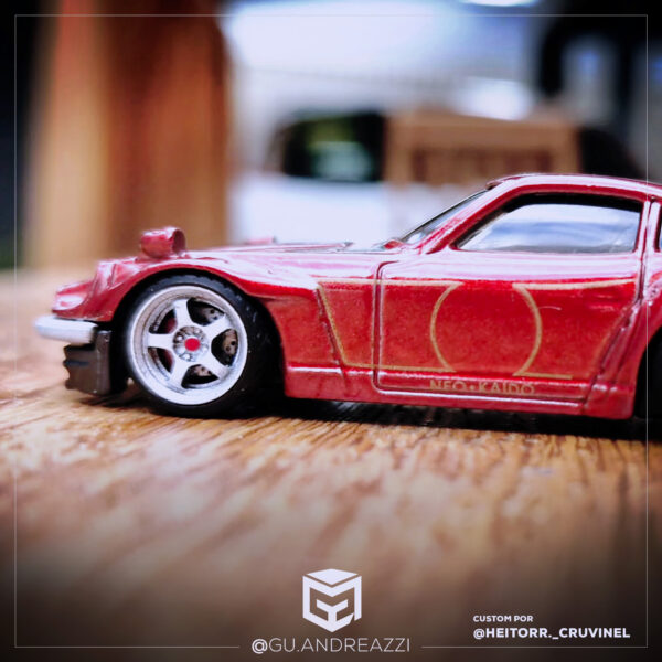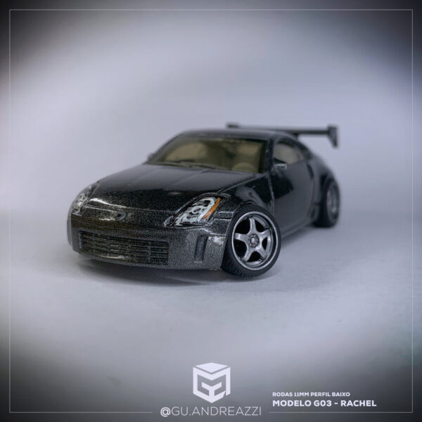 Caso utilize essa roda para customizar um Nissan 350z Hot Wheels, temático do filme, o tamanho delas deverá ser 12,3x5mm/12,3x5mm.