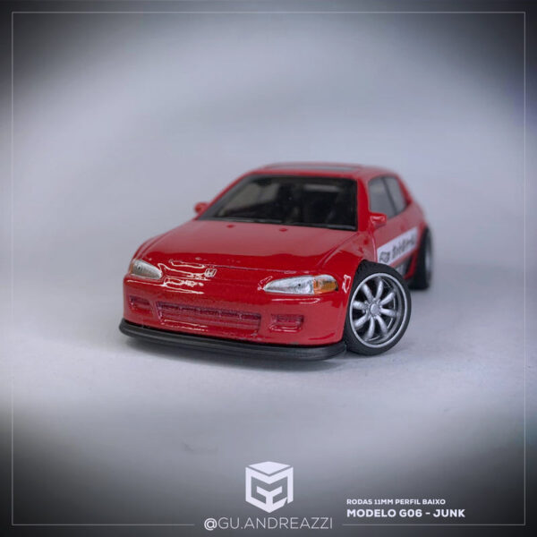 Rodas impressas em resina 3D com design baseado nas rodas Konig Rewind, mais conhecidas por terem sido usadas no icônico Honda Civic Si guiado por Samantha no jogo de Need For Speed Underground, lançado 2003.