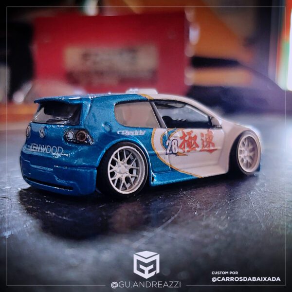 Caso utilize essa roda para customizar um Volkswagen Golf GTI 2007 Hot Wheels temático do jogo, o tamanho delas deverá ser 12,3x5mm/12,3x5mm.