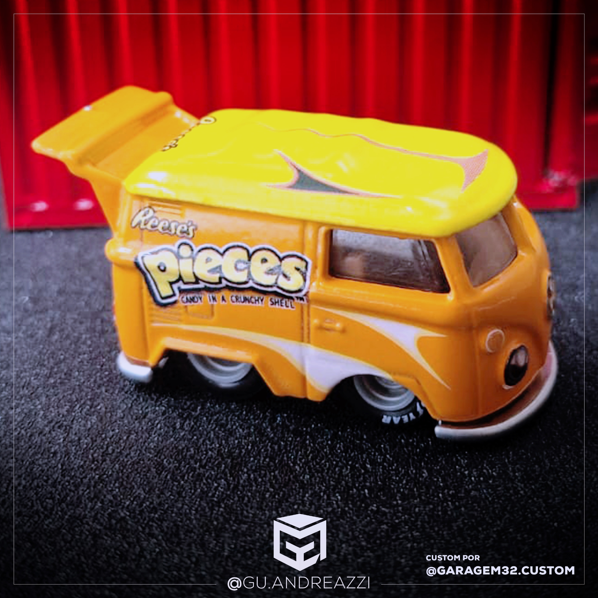 Desenhado em cima de um modelo Volkswagen Kool Kombi da Hot Wheels, este decalque emula um design da Kombi T1 Reeses.