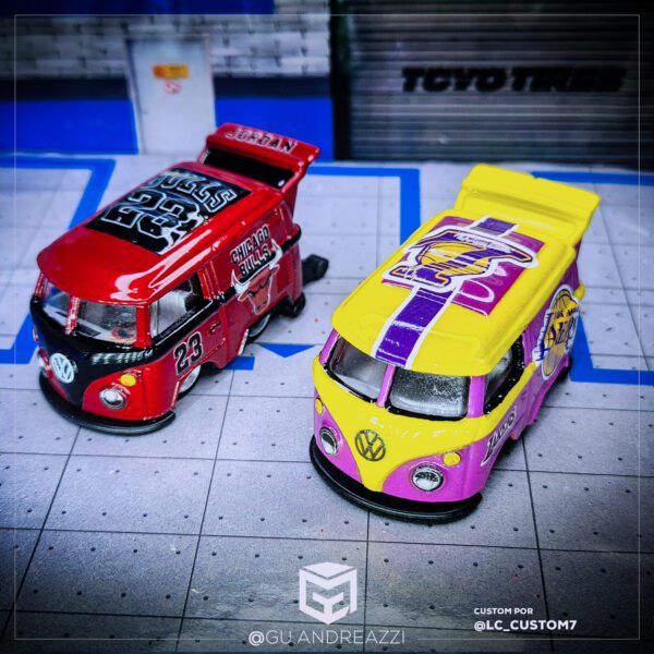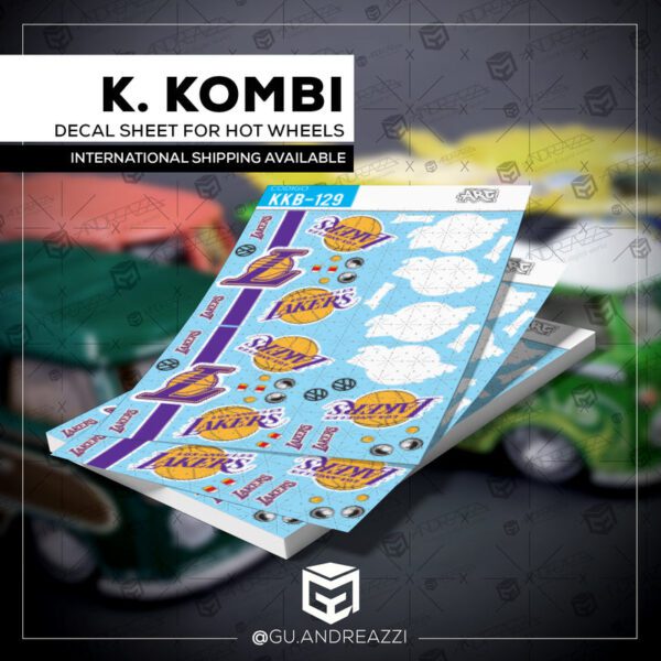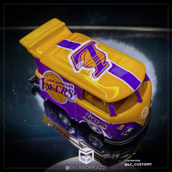 Desenhado em cima de um modelo Volkswagen Kool Kombi da Hot Wheels, este decalque emula o design temático do time de basquete Los Angeles Lakers.