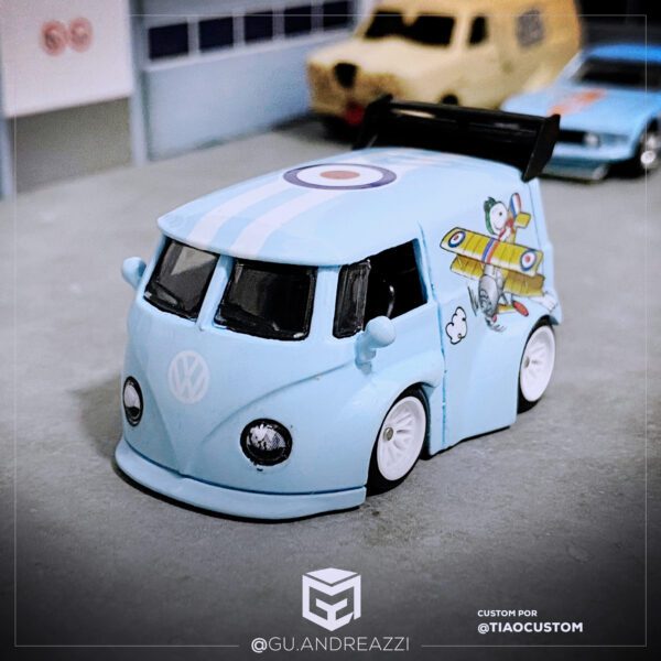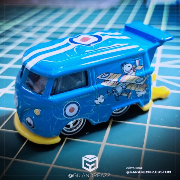 Desenhado em cima de um modelo Volkswagen Kool Kombi da Hot Wheels, este decalque emula o design temático do Snoopy.