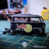 Desenhado em cima de um modelo Volkswagen Kool Kombi da Hot Wheels, este decalque emula o design temático da Red Bull.