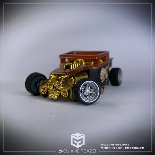 Rodas impressas em resina 3D com design visto em Rats americanos.