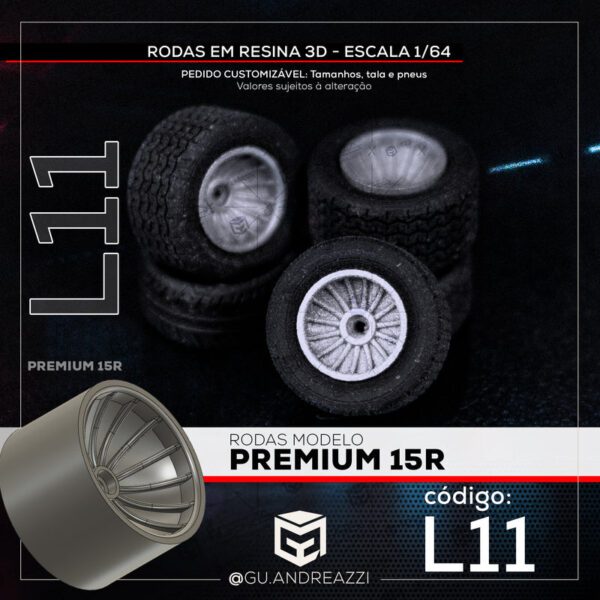 L11 – Premium 15R – Rodas 3D para 1/64