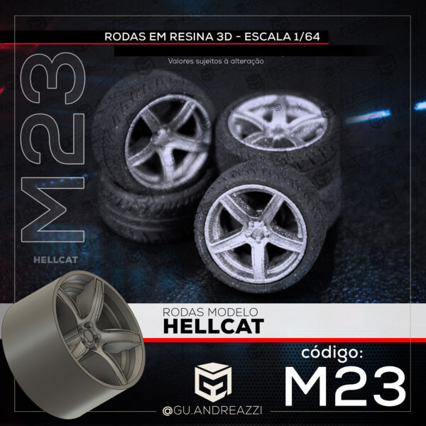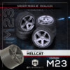 Rodas impressas em resina 3D com design baseado nas rodas originais Dodge, utilizado no Dodge Challenger.