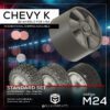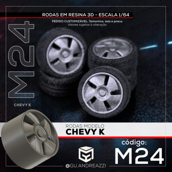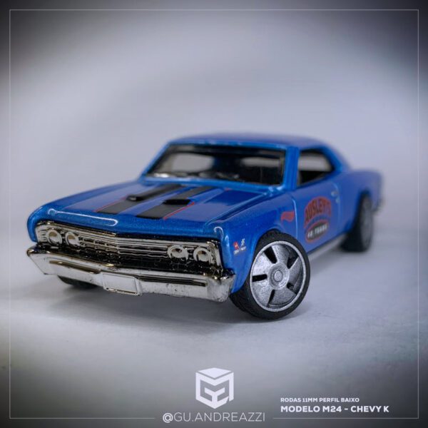 Rodas impressas em resina 3D com design baseado nas rodas catavento, muito utilizadas no Kadett e outros Chevrolets antigos.