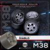 Rodas impressas em resina 3D com design baseado em rodas originais da Lamborghini Diablo.