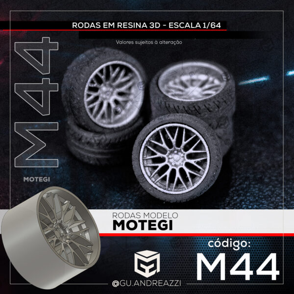 Rodas impressas em resina 3D com design baseado nas rodas RO_JA Motegi.