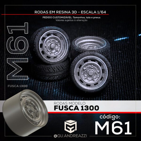 M61 – Fusca 1300 – Rodas 3D para 1/64