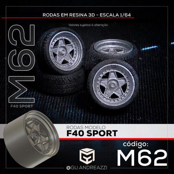Rodas impressas em resina 3D com design baseado nas rodas padrão das Ferrari F40.