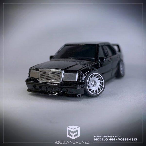 Rodas impressas em resina 3D com design baseado nas rodas Vossen 313.