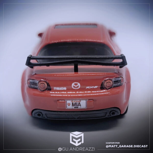 Aerofólio desenvolvido exclusivamente para uso nas customs feitas em Matchbox Mazda RX8. Dimensões e ajustes indisponíveis para esta peça.