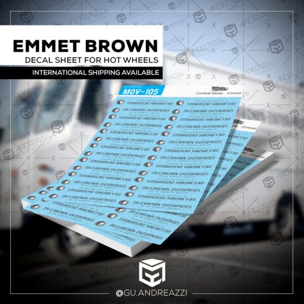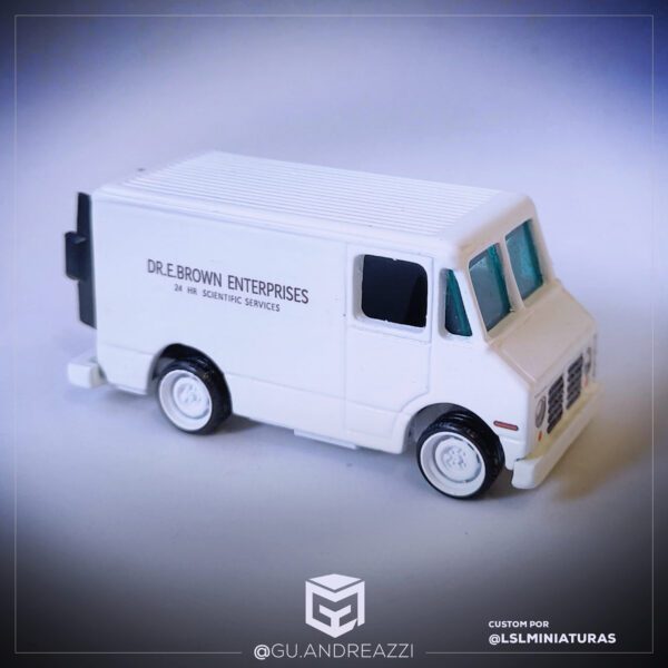 Montado em cima de um Combat Medic da Hot Wheels, este decalque emula o design da van do Dr. Emmet Brown que aparece no filme,