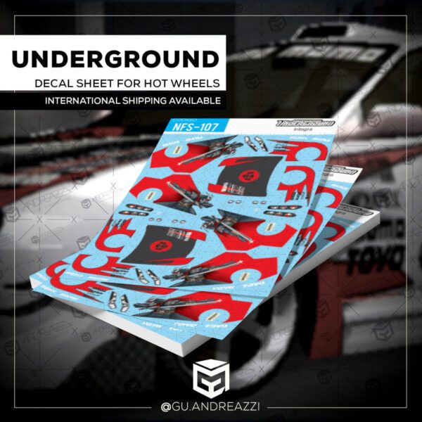Montado em cima de um Acura Integra da Hot Wheels, este decalque contém a arte completa do carro utilizado no jogo.