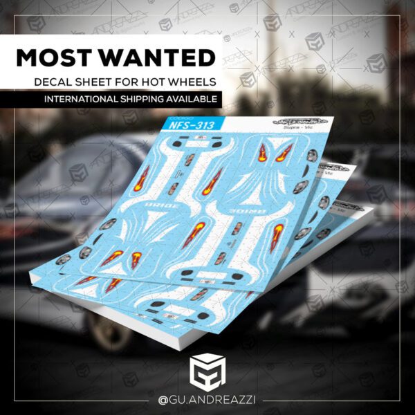 Montado em cima de um Toyota Supra da Hot Wheels, este decalque contém a arte completa do carro utilizado no jogo.