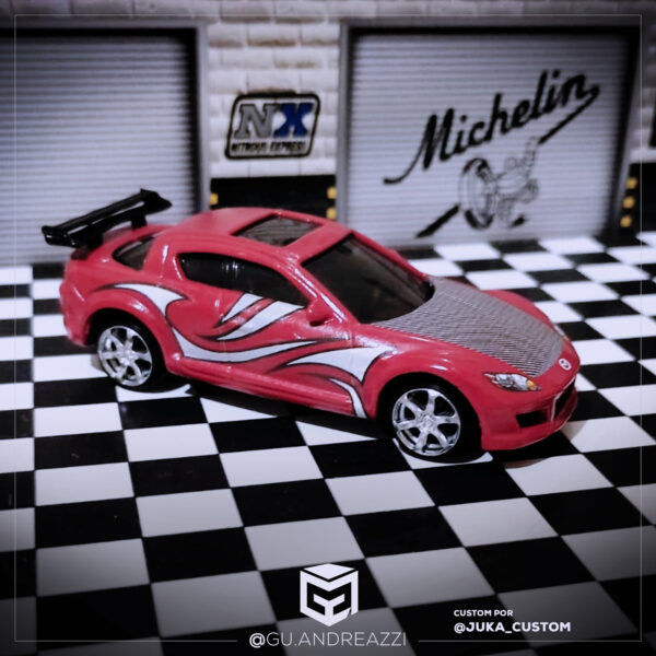 Montado em cima de um Mazda RX8 Hot Wheels, este decalque contém a arte completa do carro utilizado no jogo.
