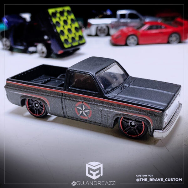 Montado em cima de uma Chevy Silverado da Hot Wheels, este decalque contém a arte completa do carro conforme lançado originalmente como Military na linha Cop Rods.