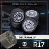Rodas impressas em resina 3D com design baseado nas rodas originais do Lancia Delta Rally.