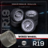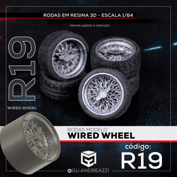 Rodas impressas em resina 3D com design baseado nas rodas Wire, mais conhecidas por serem usadas em carros de corridas dos anos 50.