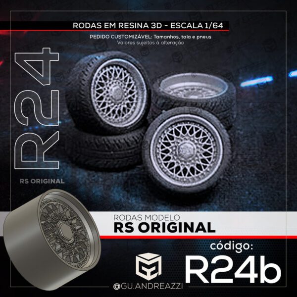 Rodas impressas em resina 3D com design baseado nas rodas BBS RS.