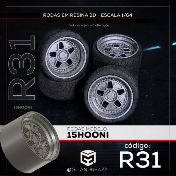 Rodas impressas em resina 3D com design baseado nas rodas Fifteen52, presentes no Mustang Hoonicorn guiado pelo saudoso Ken Block em muitos vídeos da série Gymkhana.