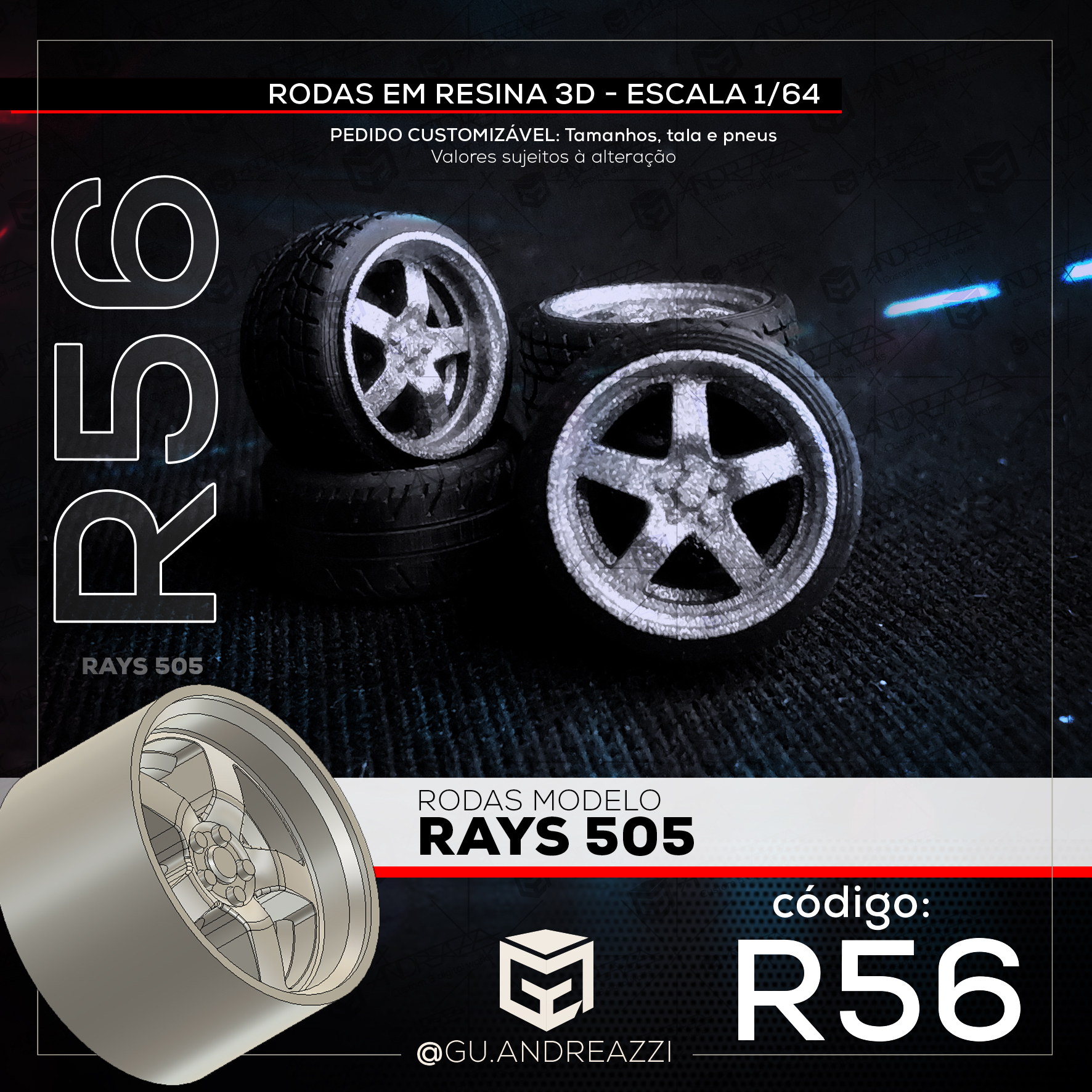R56 – Rays 505 – Rodas 3D para 1/64