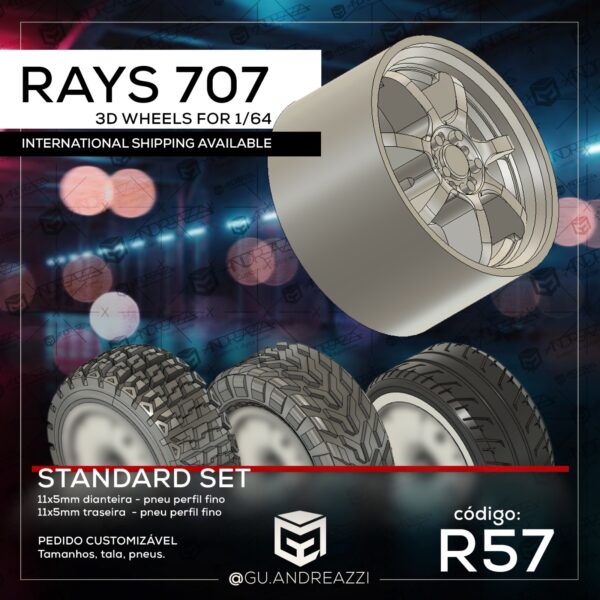 R57 – Rays 707 – Rodas 3D para 1/64