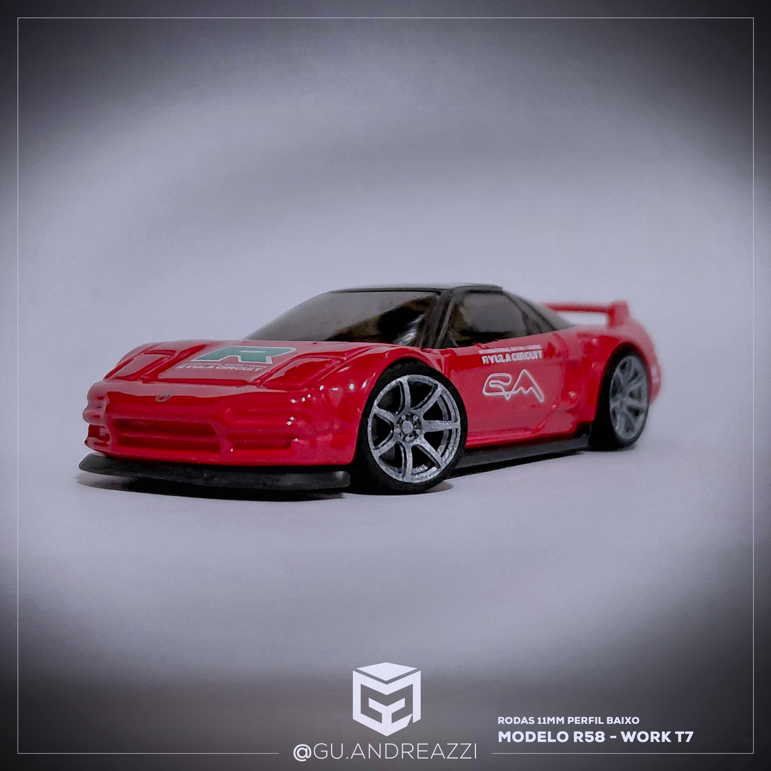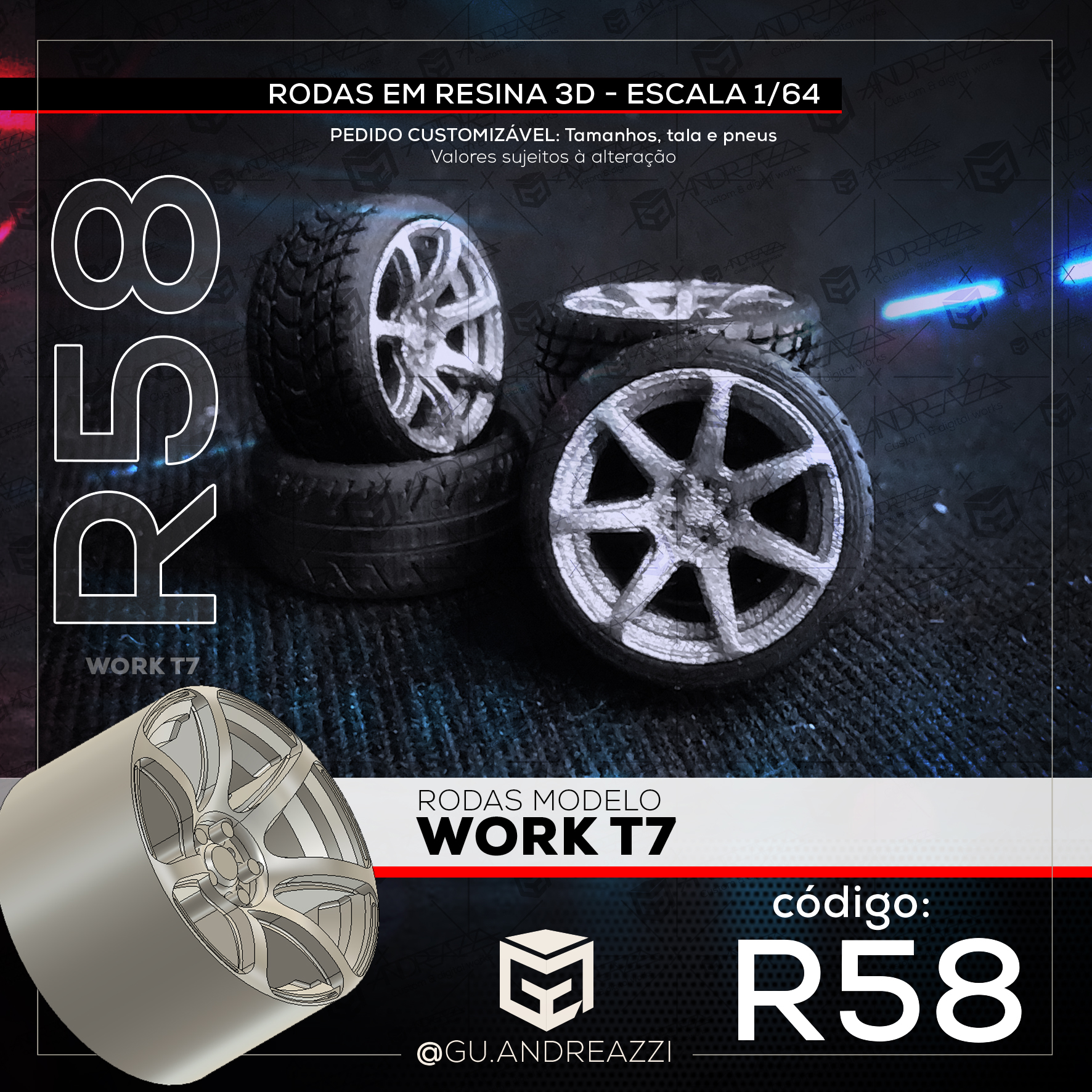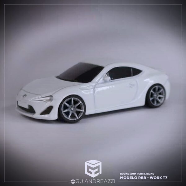 Rodas impressas em resina 3D com design baseado nas rodas work T7R.