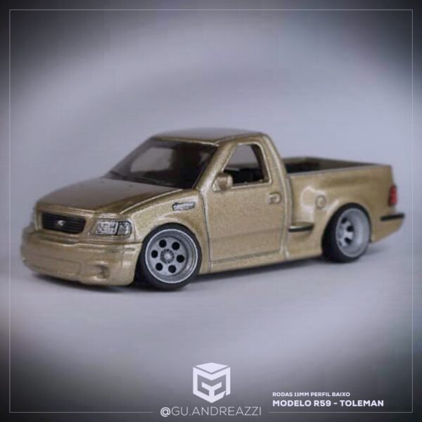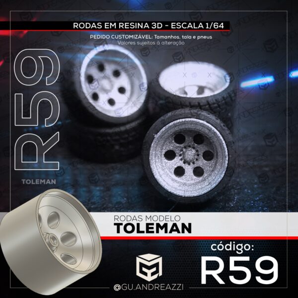 Rodas impressas em resina 3D com design baseado nas rodas de corrida da equipe Toleman em 1984.
