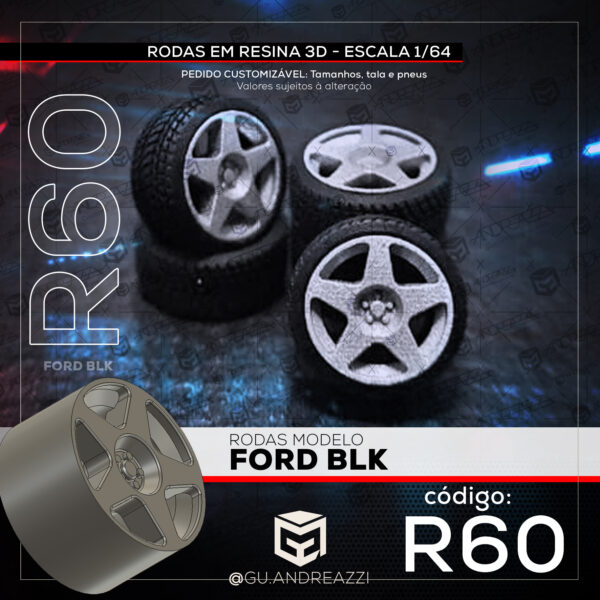 Rodas impressas em resina 3D com design baseado nas rodas 1552 utilizadas no Fiesta do Ken Block.