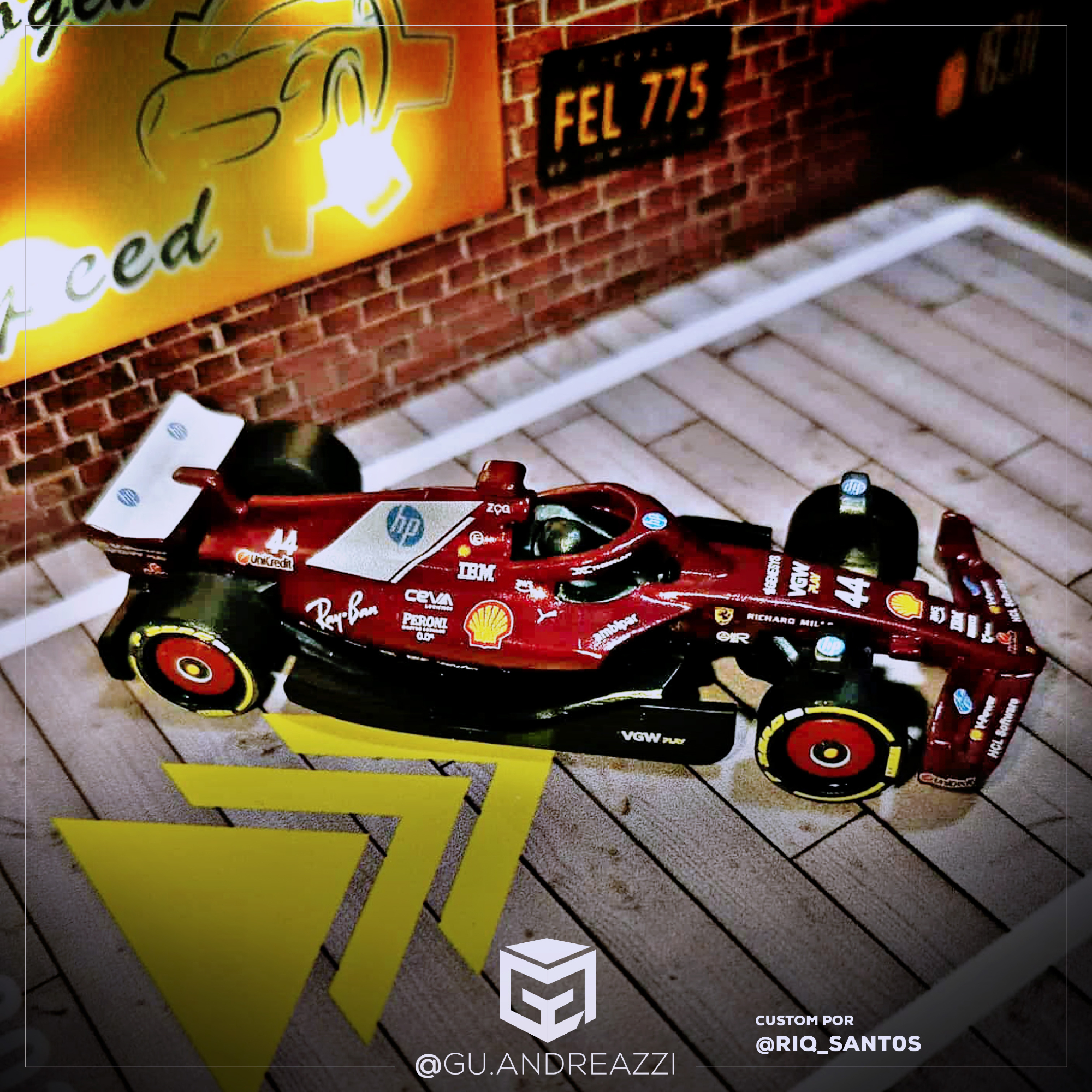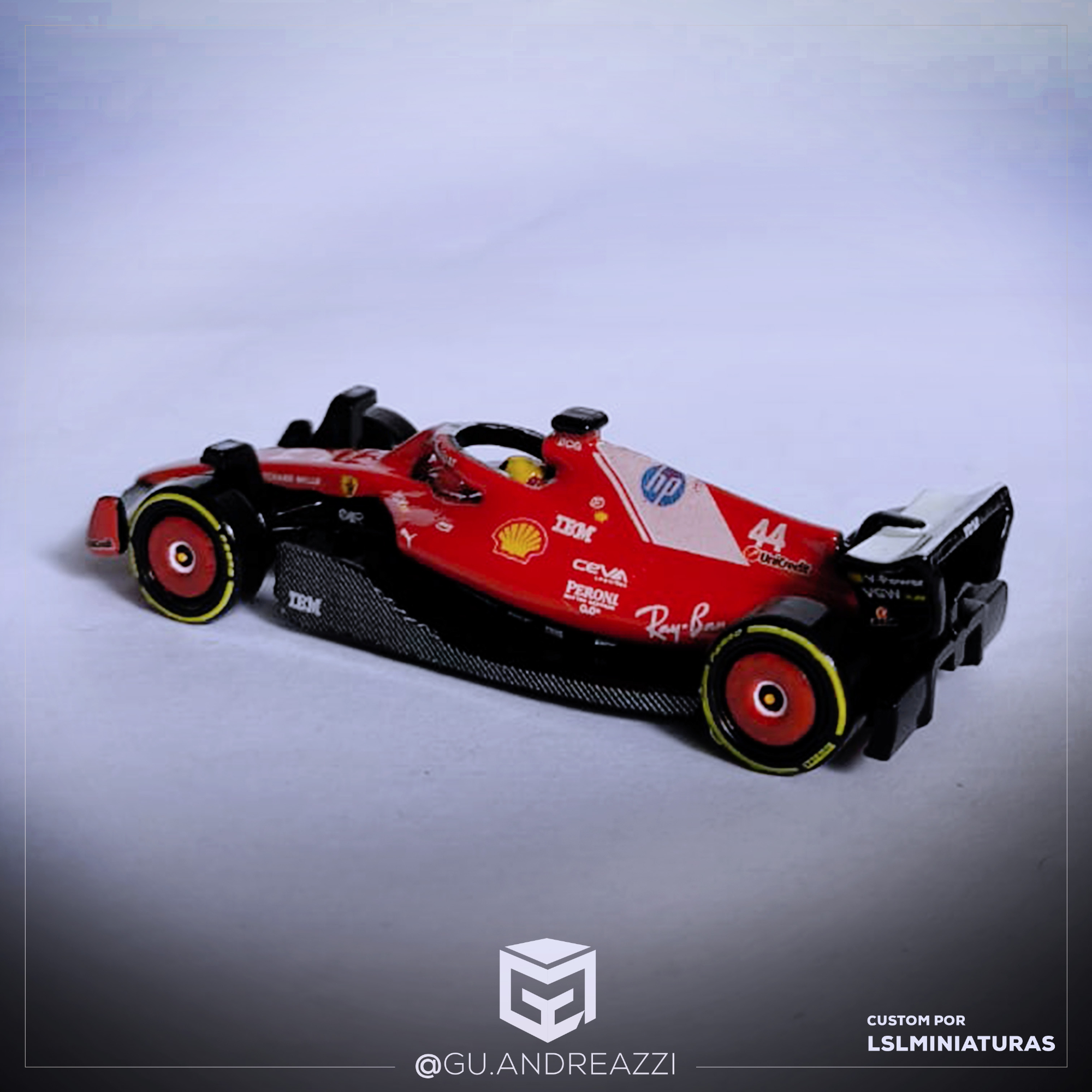 Desenhado em cima de um modelo Formula 1 Collection da Hot Wheels, este decalque replica todos os patrocínios e vinil da equipe Ferrari.