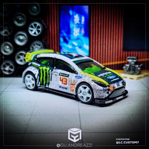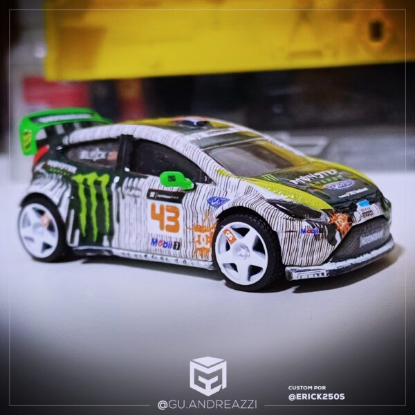 Decalque desenhado para o carro Ford Fiesta lançado pela Hot Wheels, replicando todos os patrocínios e vinil do piloto Ken Block.