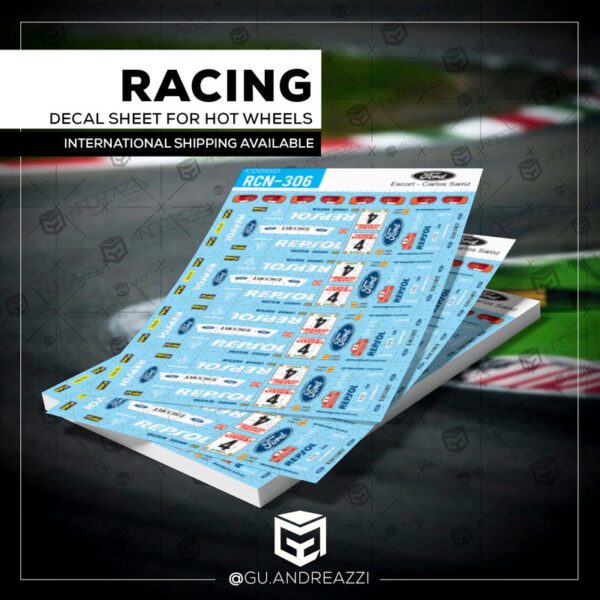 Desenhado em cima de um modelo Ford Escort da Hot Wheels, este decalque replica todos os patrocínios e vinil da equipe.