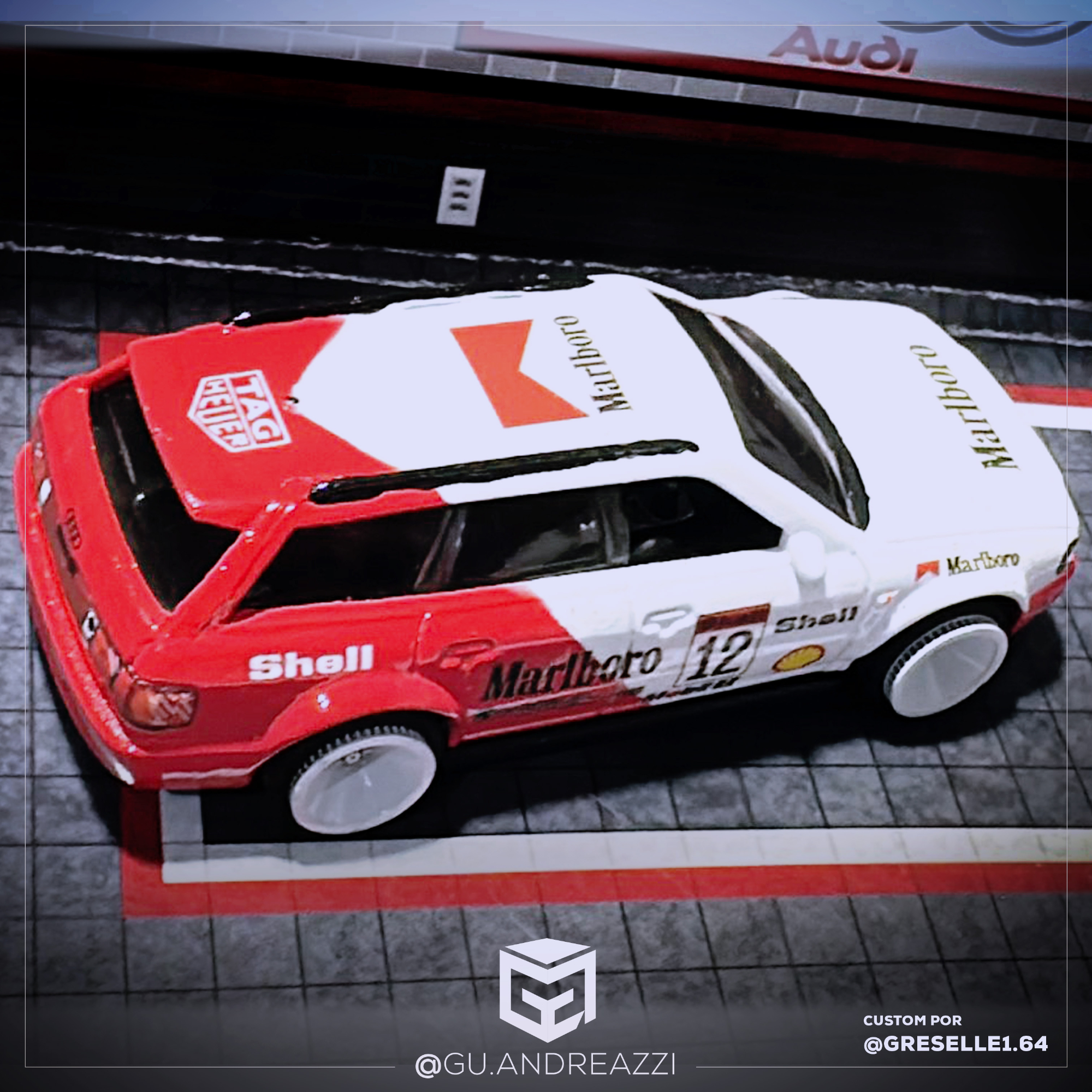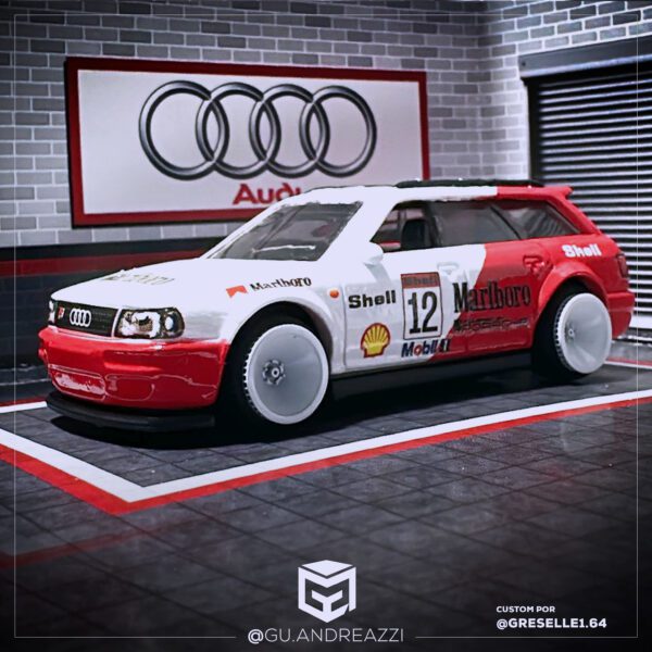 Desenhado em cima de um modelo Audi RS2 da Hot Wheels, este decalque replica todos os patrocínios e vinil da Marlboro.