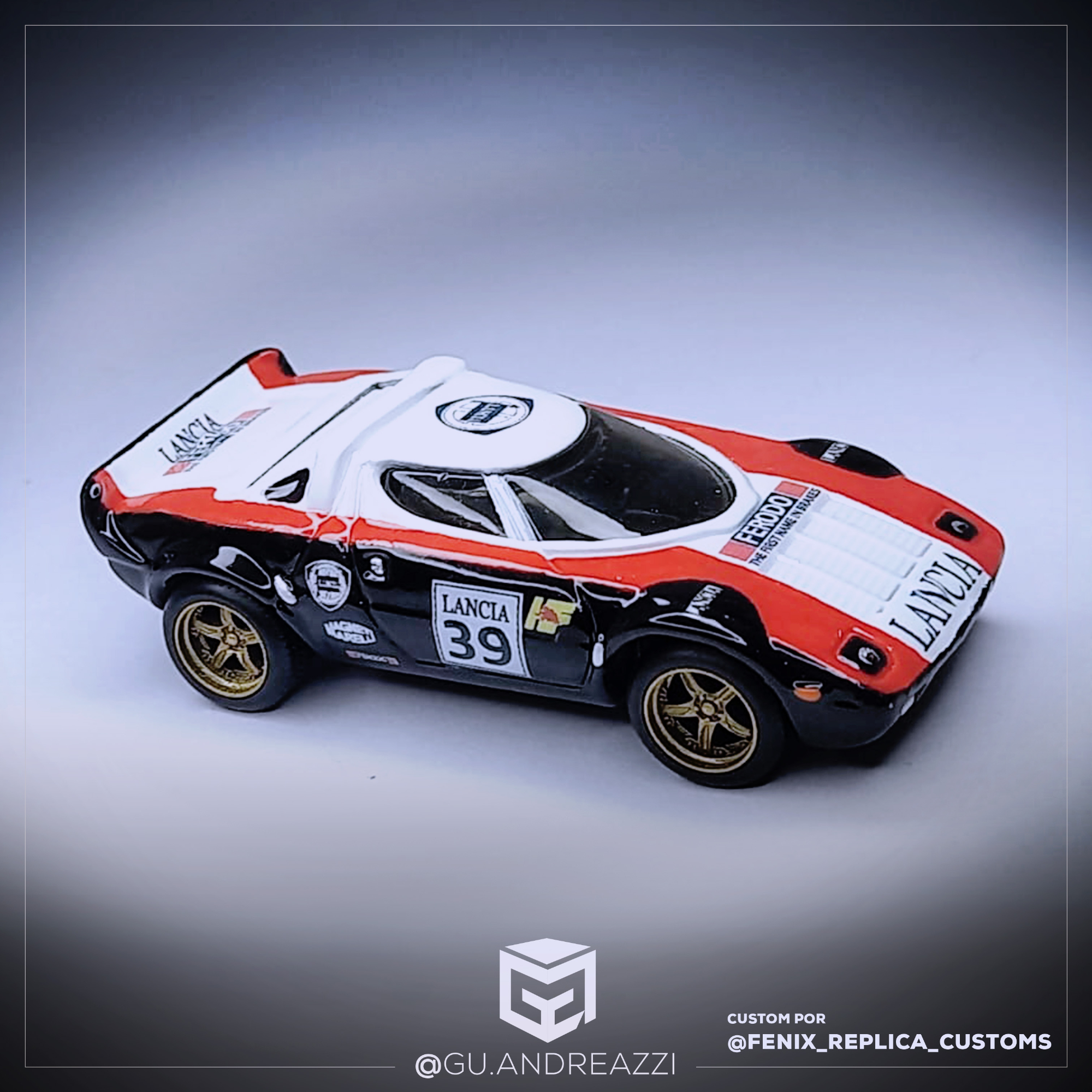 Decalque desenhado para o Lancia Stratos de rally, utilizando a miniatura da Hot Wheels.