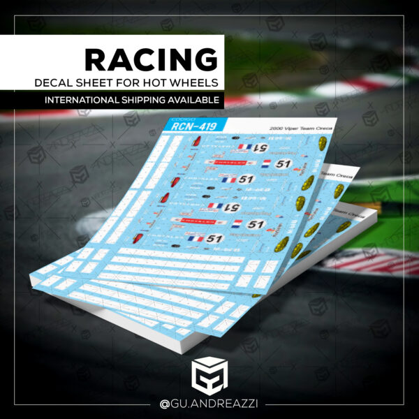 Decalque desenhado tendo como referência o famoso Dodge Viper Team Oreca de 2000, sendo utilizado como base o Dodge Viper 96 da Hot Wheels.