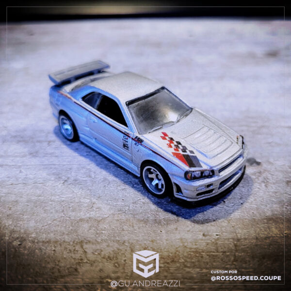 Desenhado em cima de um modelo Nissan Skyline R34 da Hot Wheels, este decalque replica todos os patrocínios da marca.