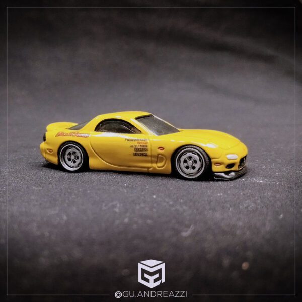 Rodas impressas em resina 3D com design baseado nas rodas Mazdaspeed MS-02, mais conhecidas por terem sido usadas no icônico Mazda Rx7 FD guiado por Keisuke Takahashi no anime Initial D.