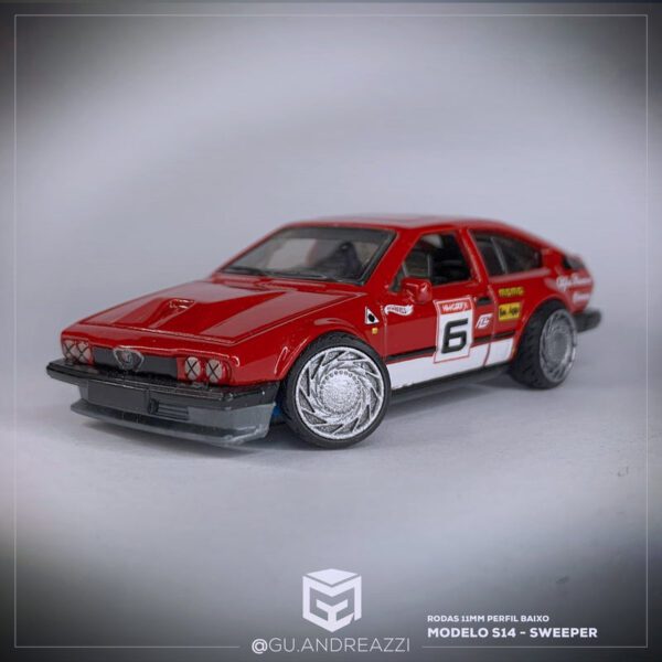 Rodas impressas em resina 3D com design baseado nas rodas do Sweeper, da série Acceleracers